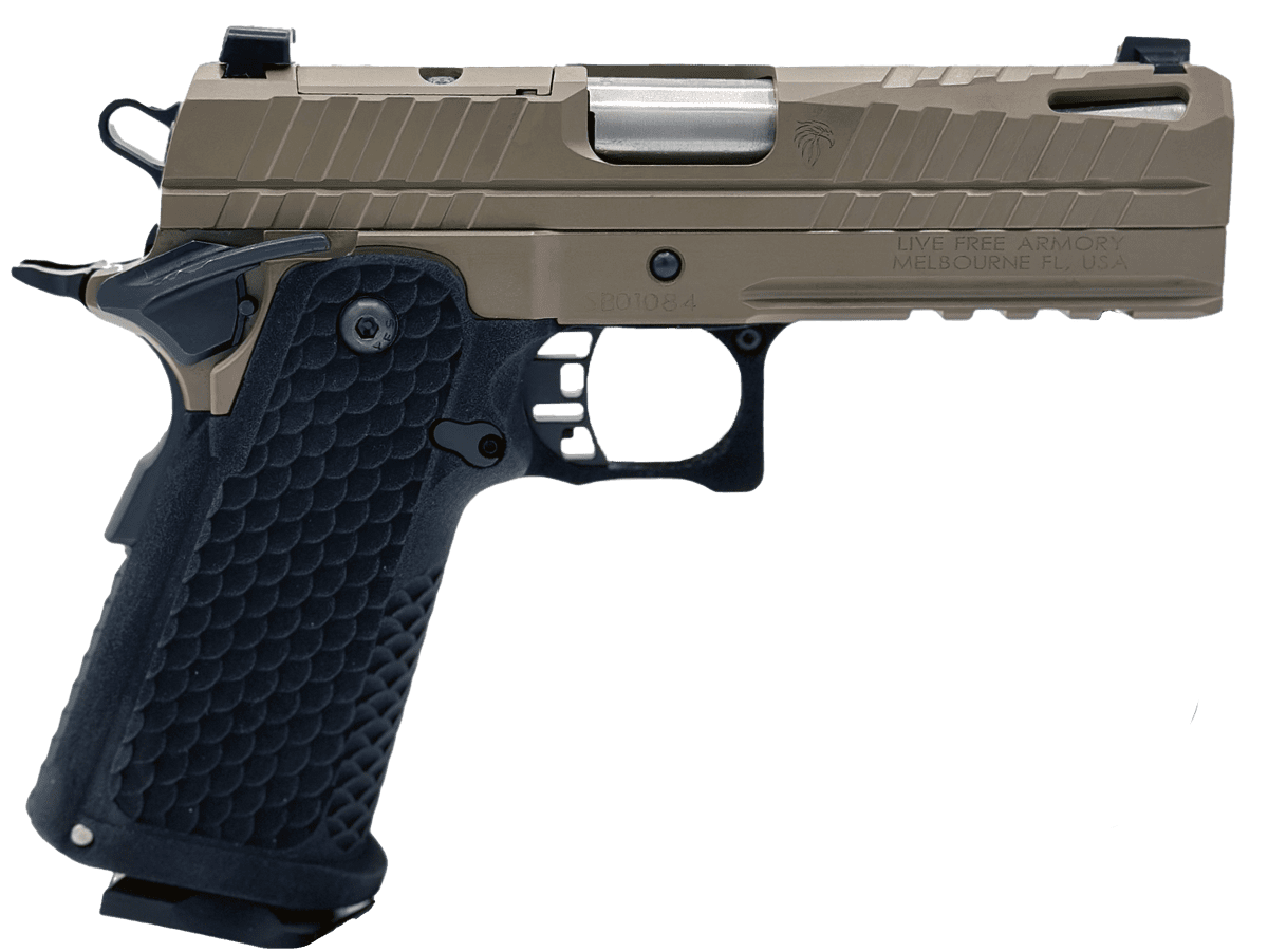 Engineered with precision, the Apollo 11 Compact retains the hallmark features of its larger version. It boasts a heat-treated 416 stainless steel slide and a durable 4140 steel frame, providing reliability and a sophisticated appearance. The pistol’s shorter barrel is matched with a meticulously tuned trigger system for a crisp, consistent pull and a left-hand 1:16 rifling, ensuring remarkable accuracy in a smaller package. The compact design enhances concealability and handling, while the innovative recoil reduction system and ergonomic grip texture offer comfortable shooting and effective control. Equipped with an RMSc optic cut and accessory rails, this compact model offers versatility and customization, making it a top choice for both everyday carry and tactical applications.