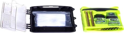 –Comes with cleaning rod sections, various hard bristle nylon brushes, jags, patch holders & cotton